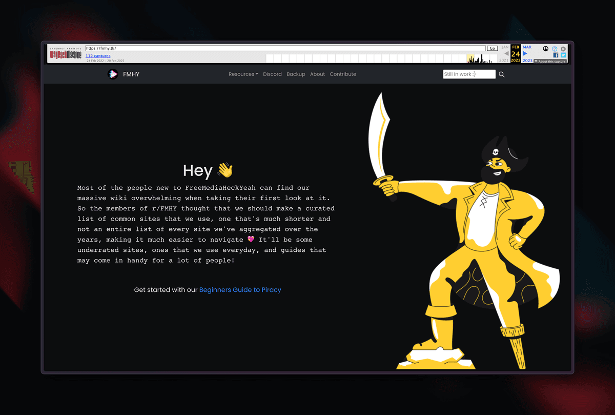 Then college opened back up in person, and so I couldn't spend as much time on it. The community eventually moved to a Vitepress template, now hosted at fmhy.net. Their version was way cleaner, better organized, just objectively better in every way.