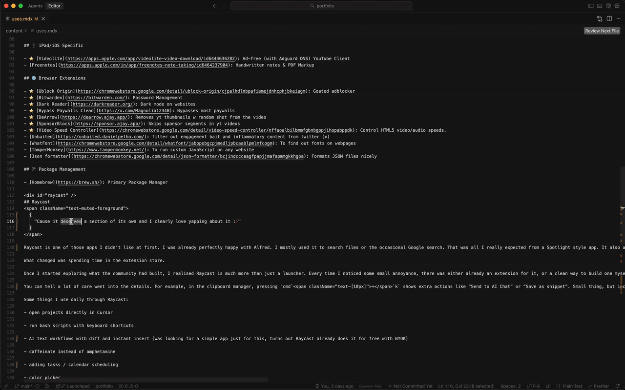 & most apps I already used had a Raycast extension, and for some it's so much easier to use them this way. Most of these aren't big features on their own. But together, they save a lot of time, & is very well designed. It took a while to grow on me. I bounced off it more than once. But once it clicked, it stuck.